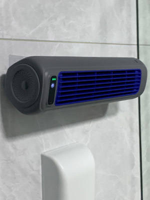Place it on your desktop (or mount it on the wall) and press the start button. That’s it! You will enjoy the sensation of cold air blowing directly onto you.